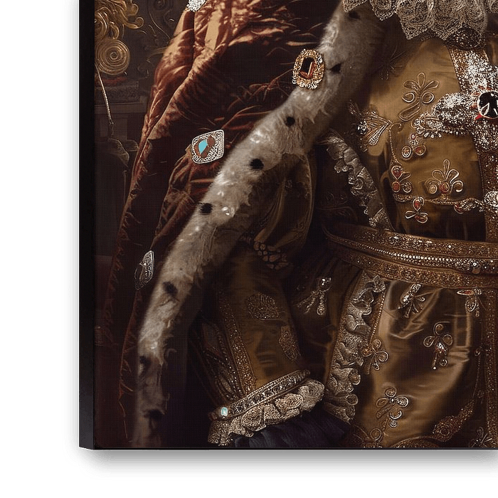 This impressive depiction of a bear in royal attire combines humorous creativity with artistic elegance. The bear wears a magnificent crown and baroque robes, which are designed with intricate details and exquisite embellishments. Ideal for art lovers and collectors who appreciate unusual and whimsical works. This picture brings a touch of royal splendour and a dash of humour to any home or office.