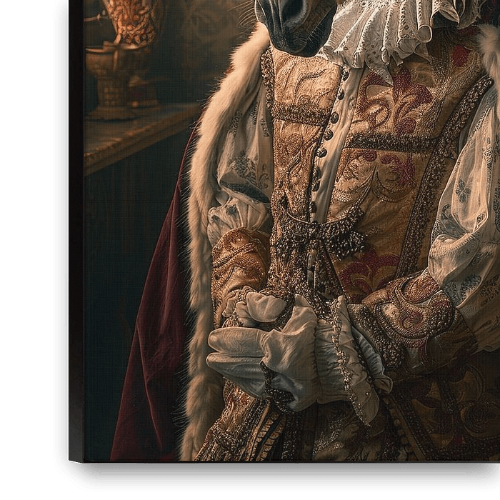 This extraordinary depiction of a donkey in royal attire combines humorous creativity with artistic elegance. The donkey wears a magnificent crown and baroque robes, richly decorated with fine details and elaborate embellishments. Ideal for art lovers and collectors who appreciate unusual and whimsical works. This picture brings a touch…