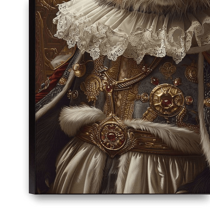 This impressive work of art shows a majestic panda in opulent baroque clothing, crowned and full of royal splendour. The loving details of the richly decorated robe and the panda's elegant pose create a perfect symbiosis of humour and elegance. A unique eye-catcher that radiates both creativity and regal grace. Ideal for art lovers and…