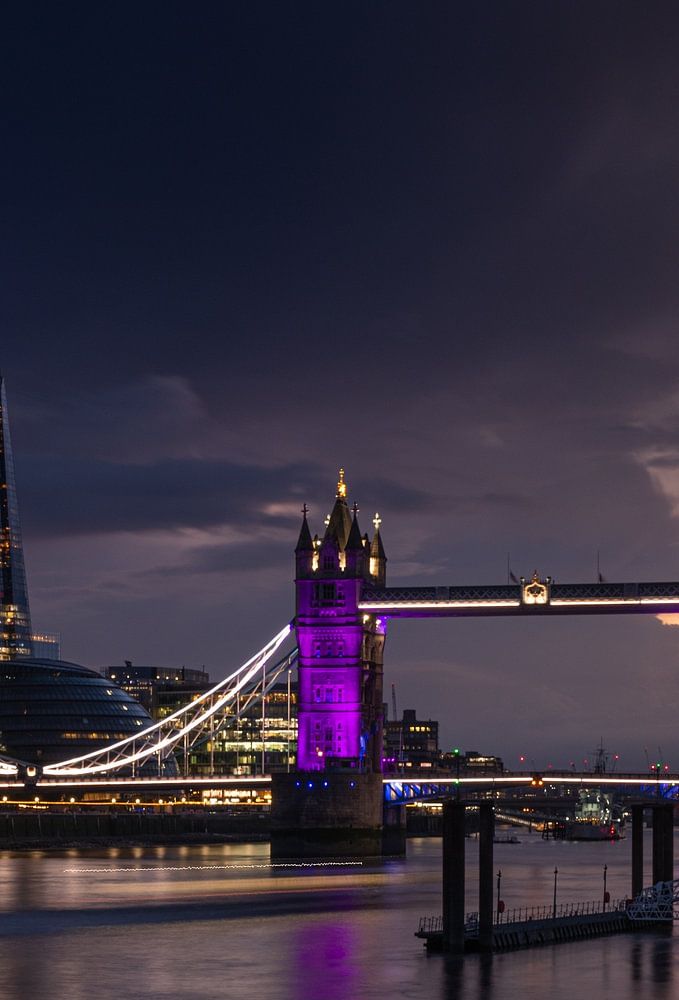 I arrived in London on the day Queen Elisabeth died, I saw the flag fly at half mast as I was shooting in the Westminster area. This is the day after, when many buildings were not lit - because of national mourning I guess - and a number were, but in Royal purple. Like Tower Bridge and the top of The Shard.