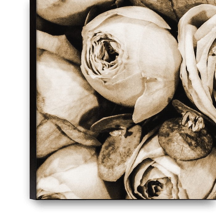 Buy this flower art Rozen in sepia by Moon van het Water on canvas, ArtFrame, poster and wallpaper, printed on demand in high quality.