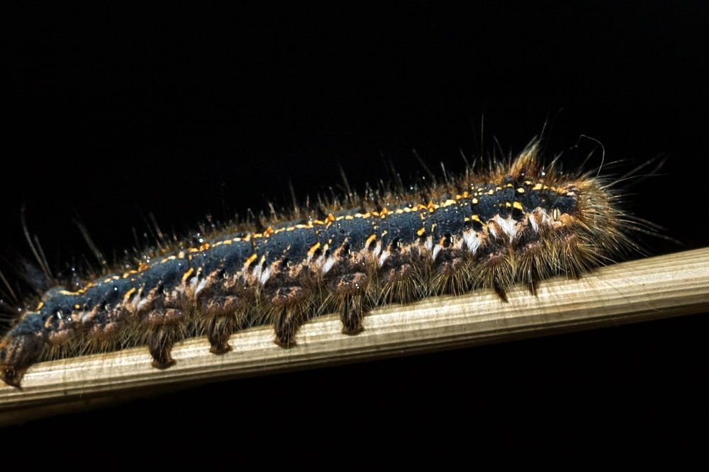 Een low-key foto van een rups. De rups vond ik aan de rand van het natuurgebied Nationaal Park Weerribben-Wieden vlakbij tussen Wanneperveen en Meppel