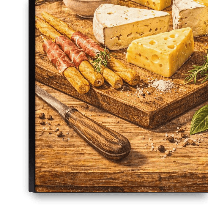 Rustic Mediterranean Kitchen Wall Art – Cheese Board Still Life by Dodik Hariyono