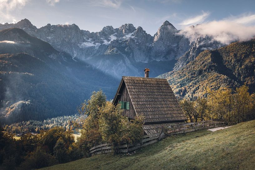 Buy this landscape artwork Rustic cottage on mountainside | Slovenia by Daan Duvillier | Dsquared Photography on canvas, ArtFrame, poster and wallpaper, printed on demand in high quality.