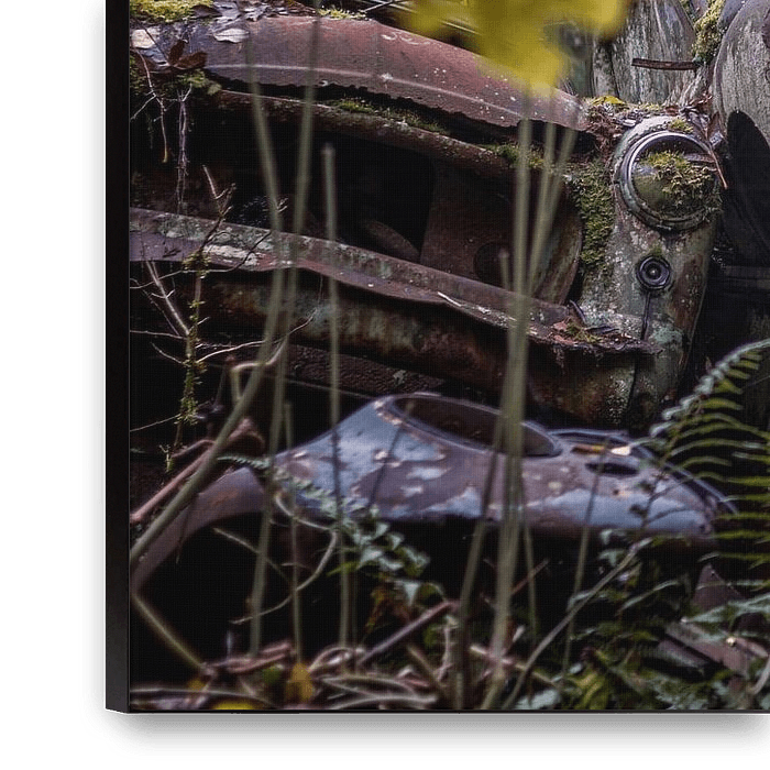 Buy the photo Rusty legacies in the forest - car graveyard in Sweden by Gentleman of Decay on canvas, ArtFrame, poster and wallpaper, printed on demand in high quality.