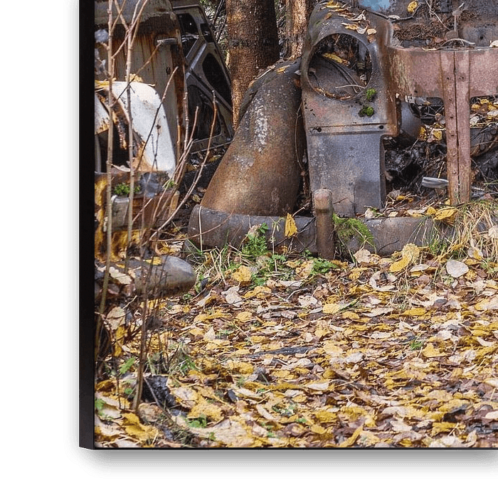 Buy the photo Rusty legacies in the forest - car graveyard in Sweden by Gentleman of Decay on canvas, ArtFrame, poster and wallpaper, printed on demand in high quality.