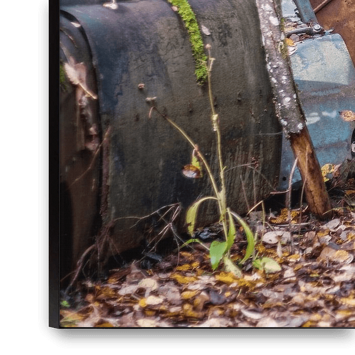 Buy the photo Rusty legacies in the forest - car graveyard in Sweden by Gentleman of Decay on canvas, ArtFrame, poster and wallpaper, printed on demand in high quality.