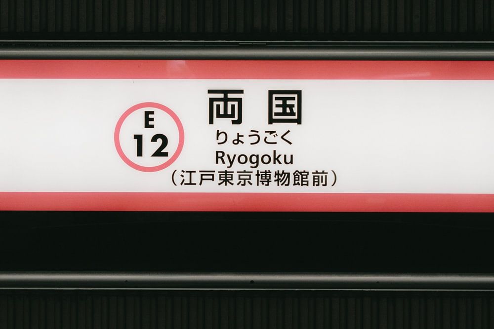 The image shows the modern and minimalist sign of Ryogoku metro station in Tokyo, perfectly framed with clear typography, Japanese characters and eye-catching colours. Ryogoku is best known for its history as a sumo neighbourhood and as the site of the Edo-Tokyo Museum, combining authentic tradition with efficient urban transport. The stationary illuminated sign is characterised by its minimalist design and embodies the functional aesthetics of Japanese architecture and culture. The dark wall creates a calm background that makes the sign a graphic eye-catcher. The image is ideal for lovers of graphic design, Asian urbanity and minimalist interior design. As a print, it gives rooms structure, coolness and a touch of Nippon style - an appealing motif for modern homes, offices and studios.