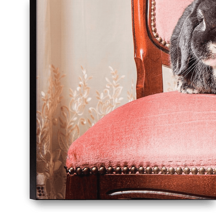 Buy the photo SA11978878 Rabbit on a pink velvet antique chair by BeeldigBeeld Food & Lifestyle on canvas, ArtFrame, poster and wallpaper, printed on demand in high quality.