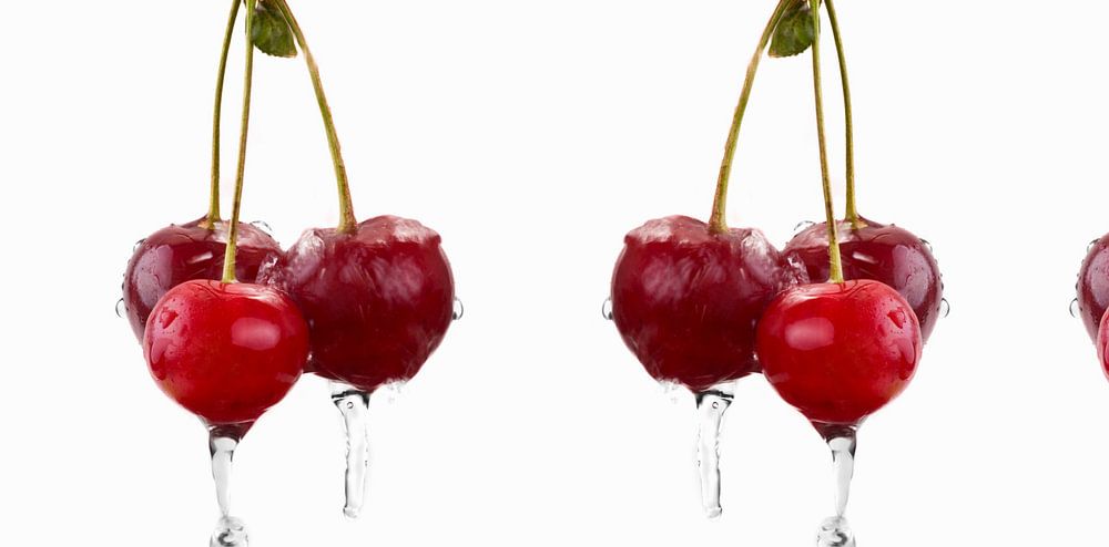 SF00987829 Four cherry bunches dripping with water by BeeldigBeeld Food & Lifestyle