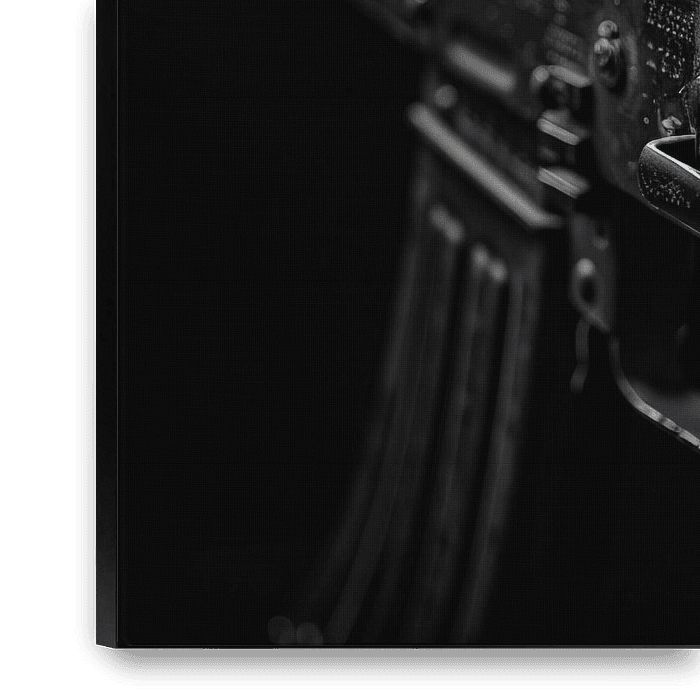 SMG machine gun close up painting that will be a unique addition to any room. With its beautiful and stylish look, it is a true eye-catcher. The brilliant colours and unusual design make this artwork 100% unique and original. It is the perfect photo print to complete your interior.