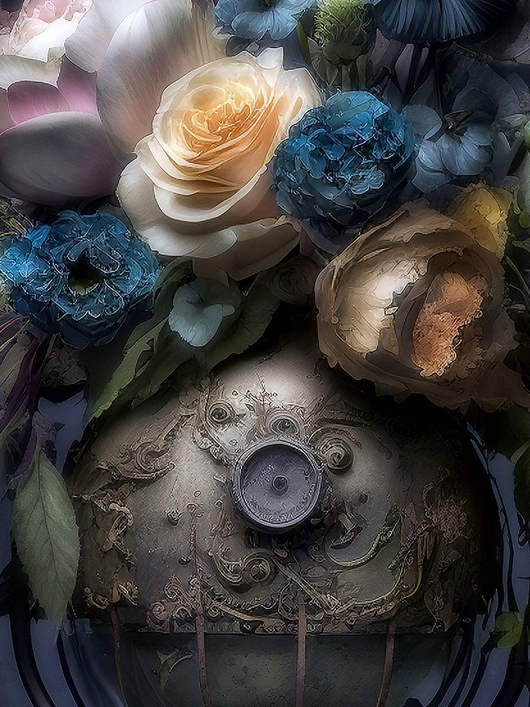 Buy this flower art SPACE FLOWERS 15 STEAMPUNK by AHAI depARTment on canvas, ArtFrame, poster and wallpaper, printed on demand in high quality.