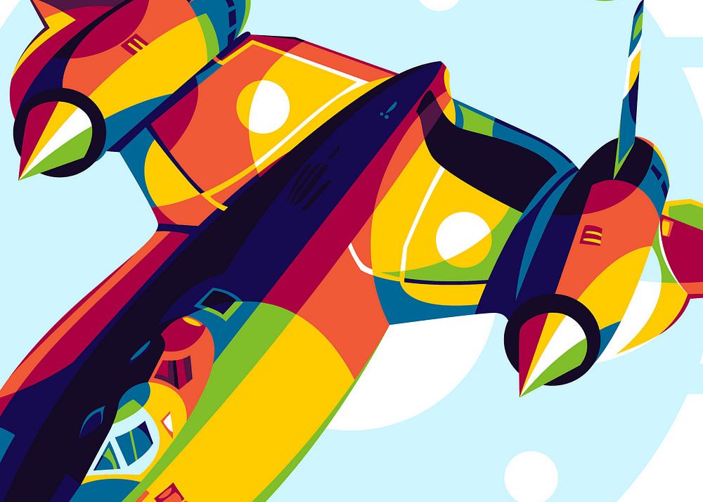 SR-71 Black Bird in Pop Art made with curved shapes and a combination of many colors to form a cute, elegant, cool and of course colorful SR-71 object.