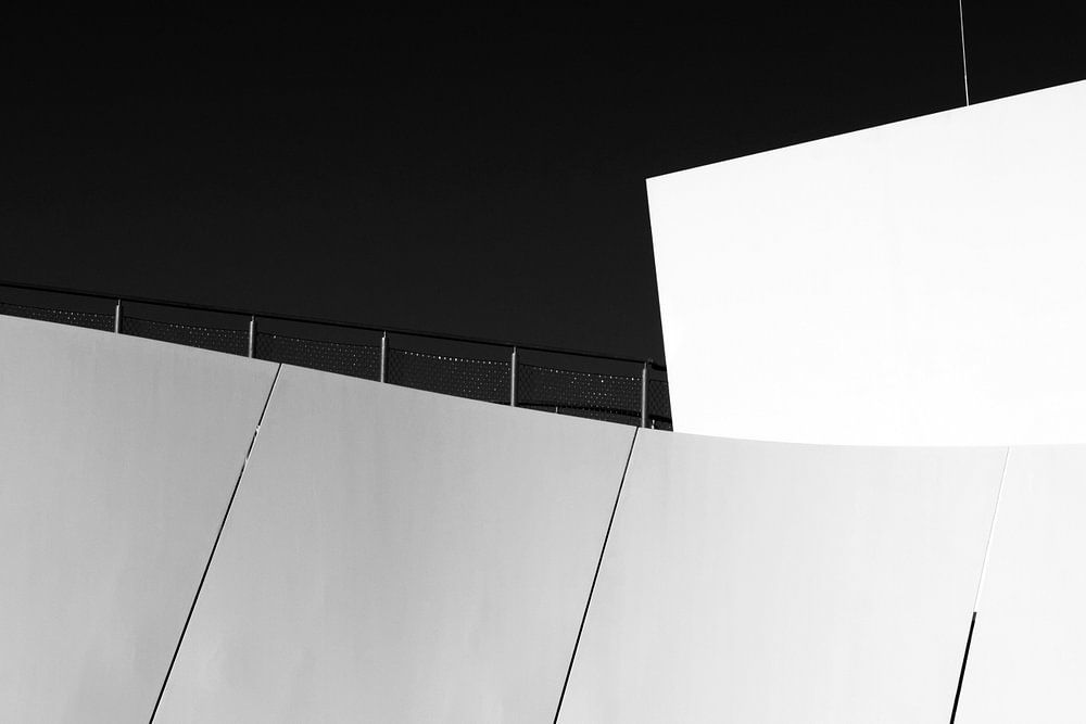 Photo of the Ozeaneum in Stralsund, Germany. I have digitally processed the minimalistic detail shot of the Ozeaneum only slightly and kept it in black and white.