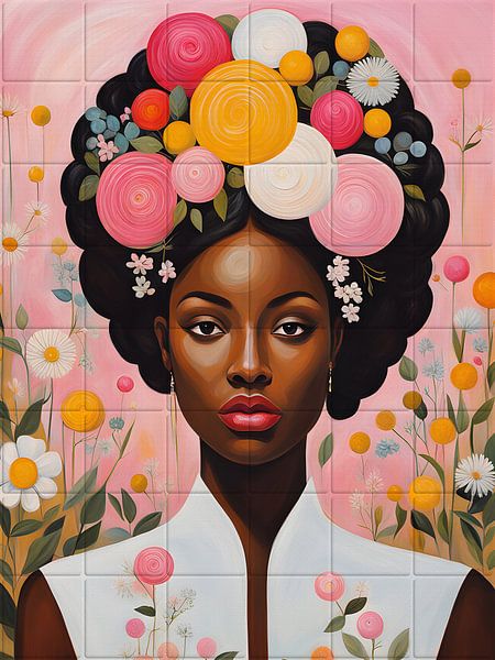 The portrait of Solveig from the "Tile Wall Art" series illustrates the beauty, mystery and unique charm of women from all over the world. The unique idea of making each artwork look like a tile wall adds a striking texture and depth that further emphasises the individual beauty of each model. This style makes each portrait really stand out and attracts attention as a visual focal point in any room. It invites you to look longer and discover the stories behind the mysterious looks and elegant poses. Each portrait is striking in colour and appearance, fresh and illustrative, decorated with flowers, birds and abstract shapes, perfect for anyone who wants to add a touch of international elegance to their surroundings.