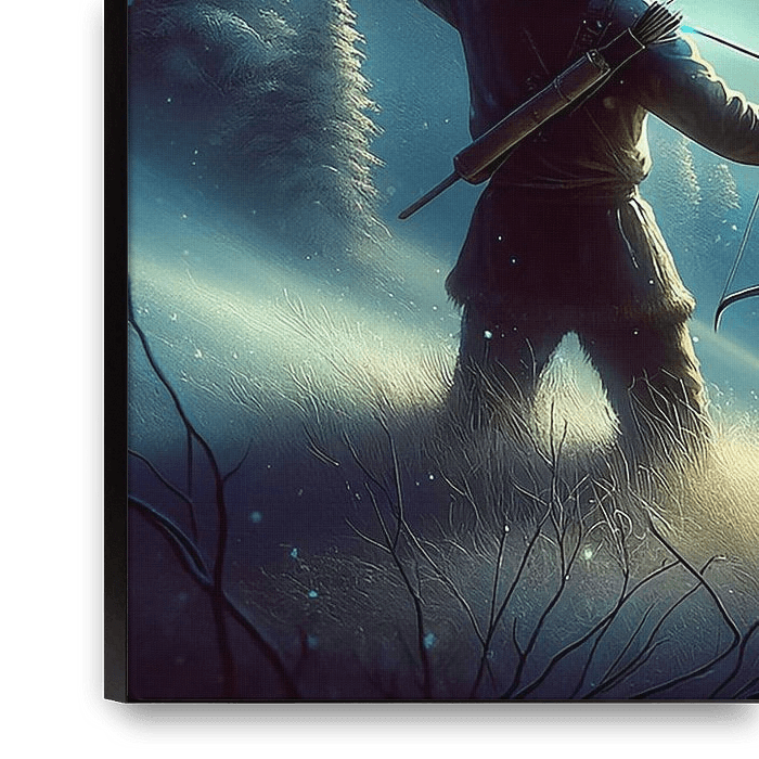 The picture captures the mystical essence of the zodiac sign Sagittarius, represented by an archer in a snowy landscape at night. In the foreground is the archer, dressed in warm winter clothing, with a taut bow in his hands. He is aiming at the constellation that appears glowing in the sky. The silhouettes of the trees, covered in…