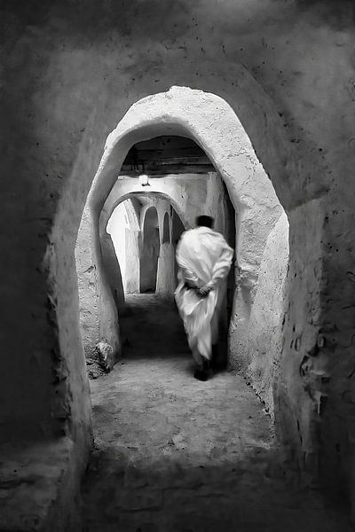 Libya. Ghadames. Sahara Desert. Oasis. Berber man. Analogue, scan from slide, converted to black and white photography.
