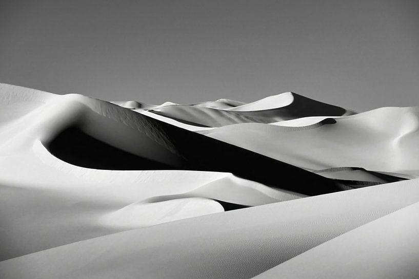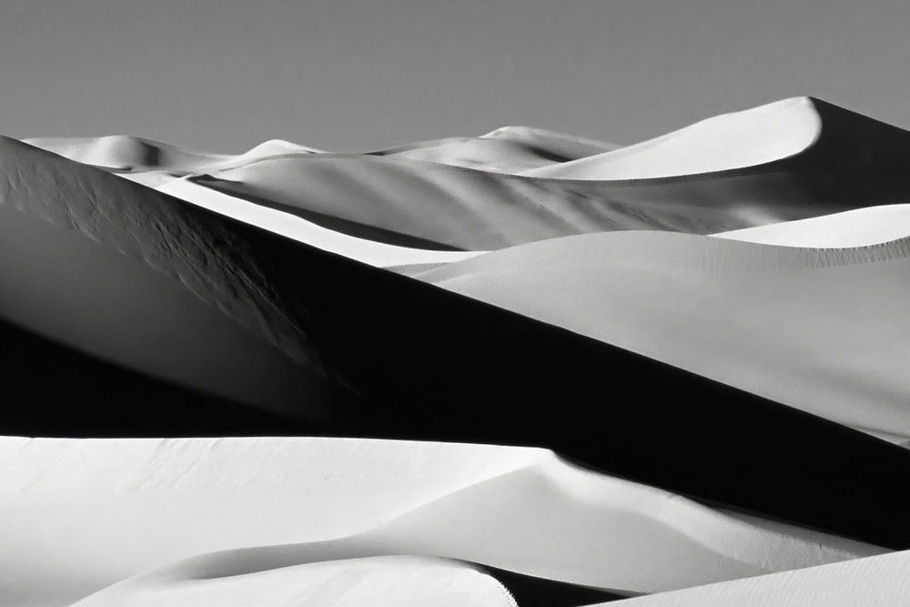 Libya, Fezzan region near Ghat. Akakus (Acacus) National Park. Sand dunes. Analogue, scan of slide, converted to black and white photography.