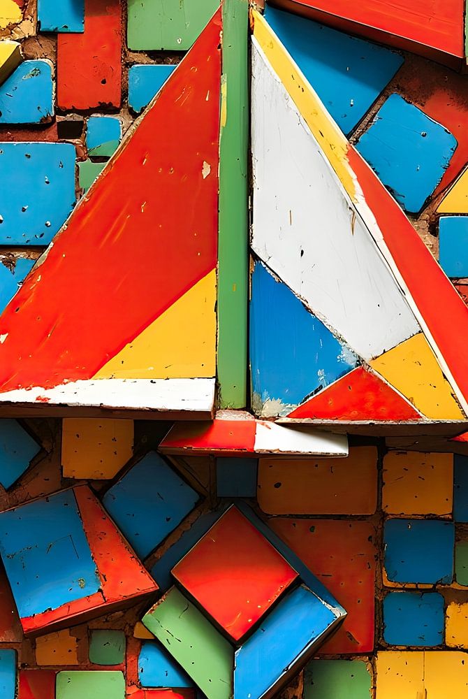 Welkom bij "Sail Away, Kunst in Collage." Dit kunstwerk is een fascinerende samensmelting van stenen en houten elementen, waarbij rechthoeken, vierkanten en driehoeken zich verenigen in een kunstzinnige compositie. Deels betegeld en deels verhoogd door tegels en houten vormen, geeft dit werk een abstracte en tegelijkertijd kleurrijke en zeer textuurrijke weergave die de essentie van een zeilboot lijkt vast te leggen.