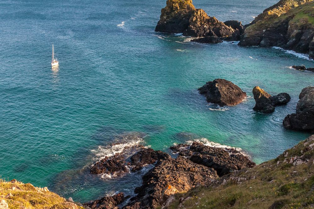 Sailing boat in the Kynance Cove, Helston, Cornwall, England by Christian Müringer