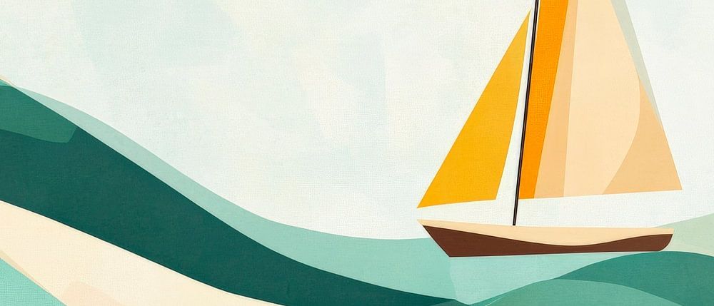 A gentle wind blows over rolling hills that shimmer in calming shades of green and fine beige. A young sailor glides peacefully over the waves, his yellow sail shining in the tranquil landscape. This harmonious composition brings a fresh, maritime atmosphere into the living room and invites you to dream and relax.
