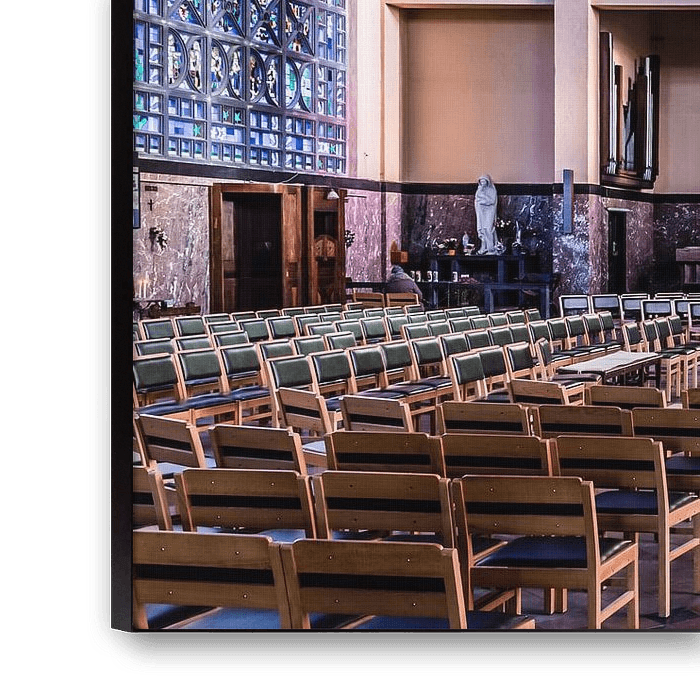 The beautifully renovated Art Deco church with coloured stained glass windows