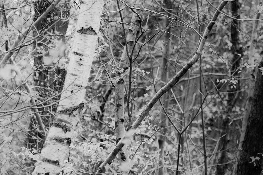 boom, bomen, berk, berken, bos, bossen, woud, natuur, zwartwit, zwart wit, melancholie, duister, herfst, winter, planten, eenheid, fotografie, natuur fotografie