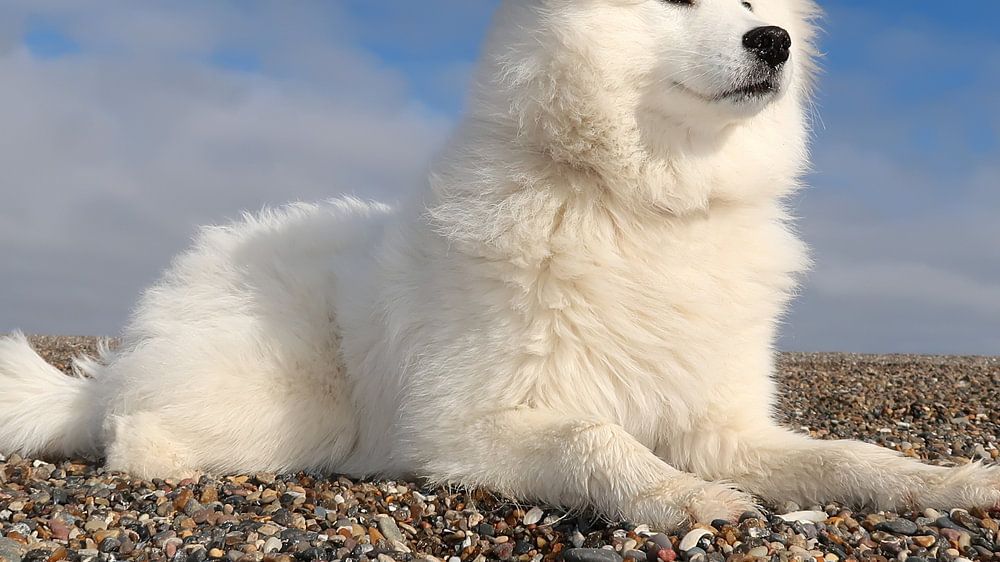 Buy this portrait Samoyed by Bo Valentino on canvas, ArtFrame, poster and wallpaper, printed on demand in high quality.