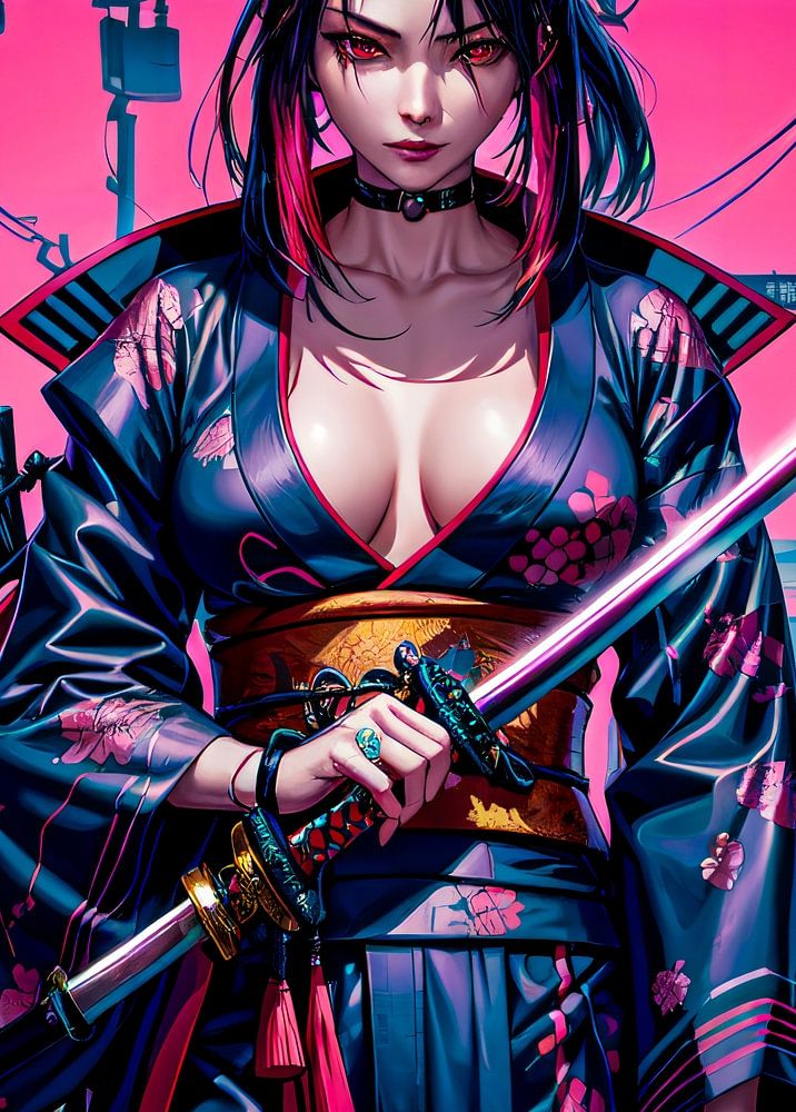 Cyberpunk samurai woman, Futuristic geisha warrior, Neon cyberpunk katana girl, Blade cyberpunk art, Samurai cyberpunk aesthetic, Techno-geisha with sword, Futuristic Japan cyberpunk, Neon street warrior. In The Sovereign Edge, the Neon Hare reaches the apex of her myth. The wandering listener has become a warrior, and the warrior has become sovereign.