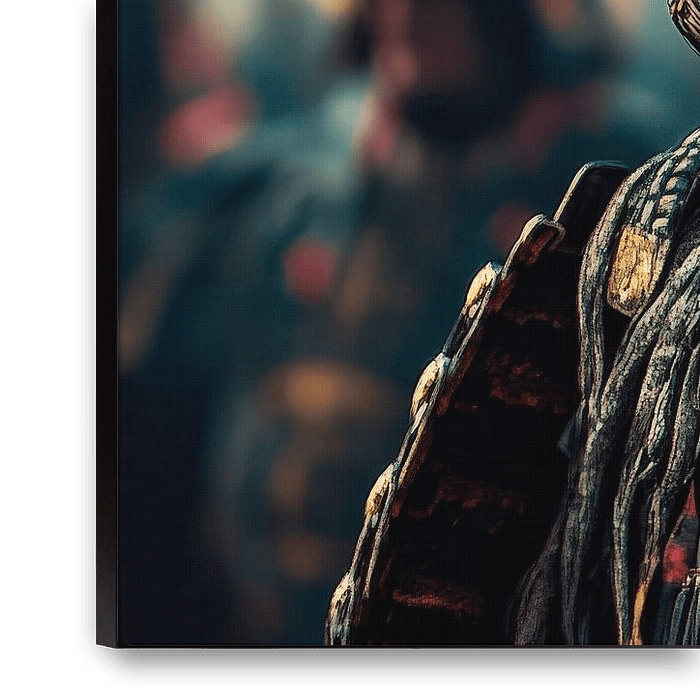 Under the spell of ancient warriors, captured in gleaming armour and majestic helmets, the image tells of strength and honour. The deep colours and impressive details capture the timeless fighting spirit. Ideal for a living room, it creates an atmosphere of courage and history that captivates every viewer.