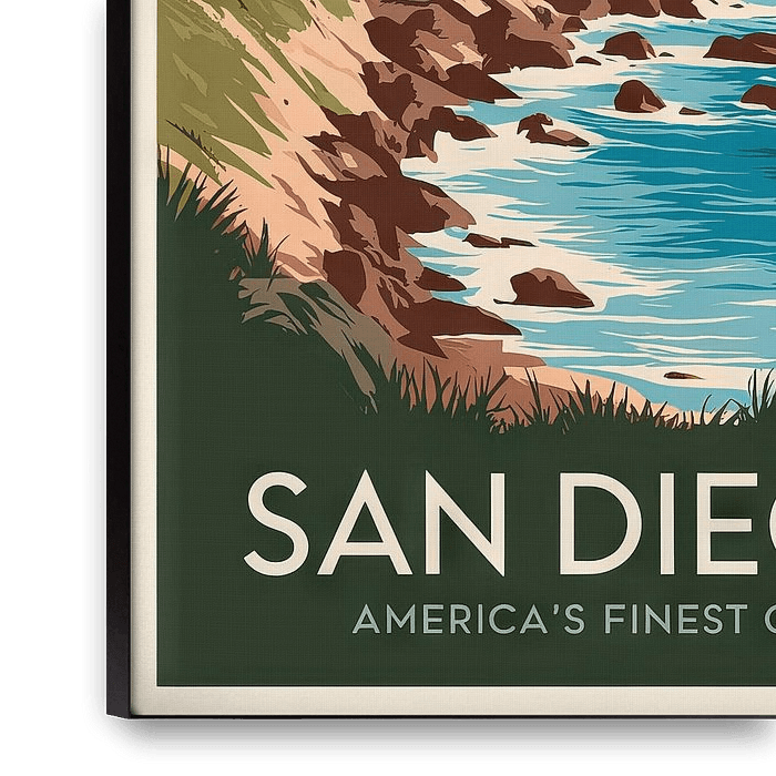 Buy this landscape artwork San Diego Vintage Travel Poster by Poster Art Shop on canvas, ArtFrame, poster and wallpaper, printed on demand in high quality.