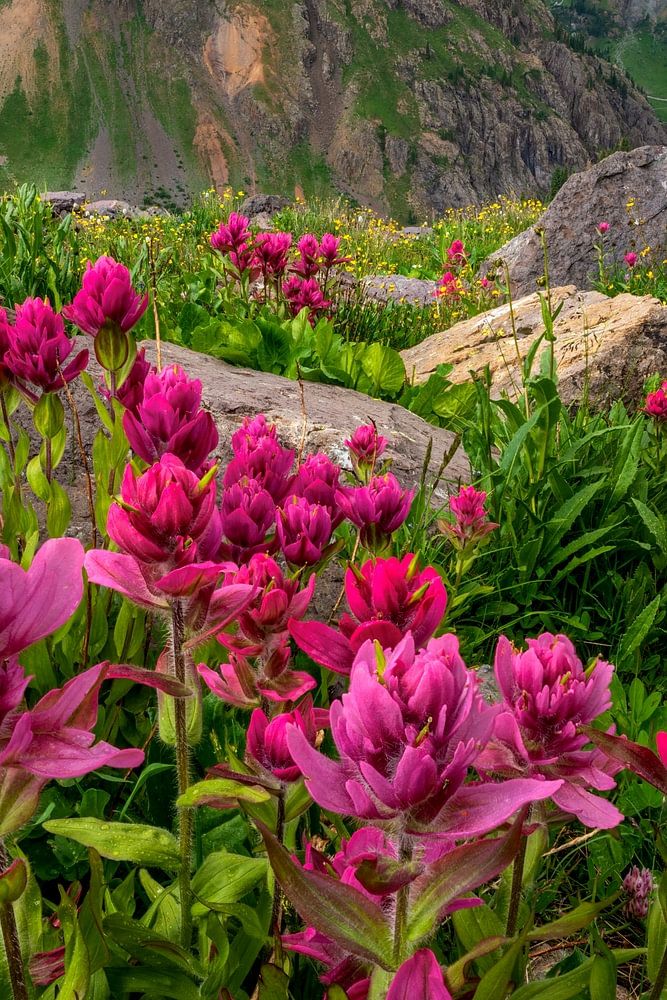 Large Fine Art photo of Indian Paintbrush wildflowers in the San Juan Mountain high above Ouray Colorado.