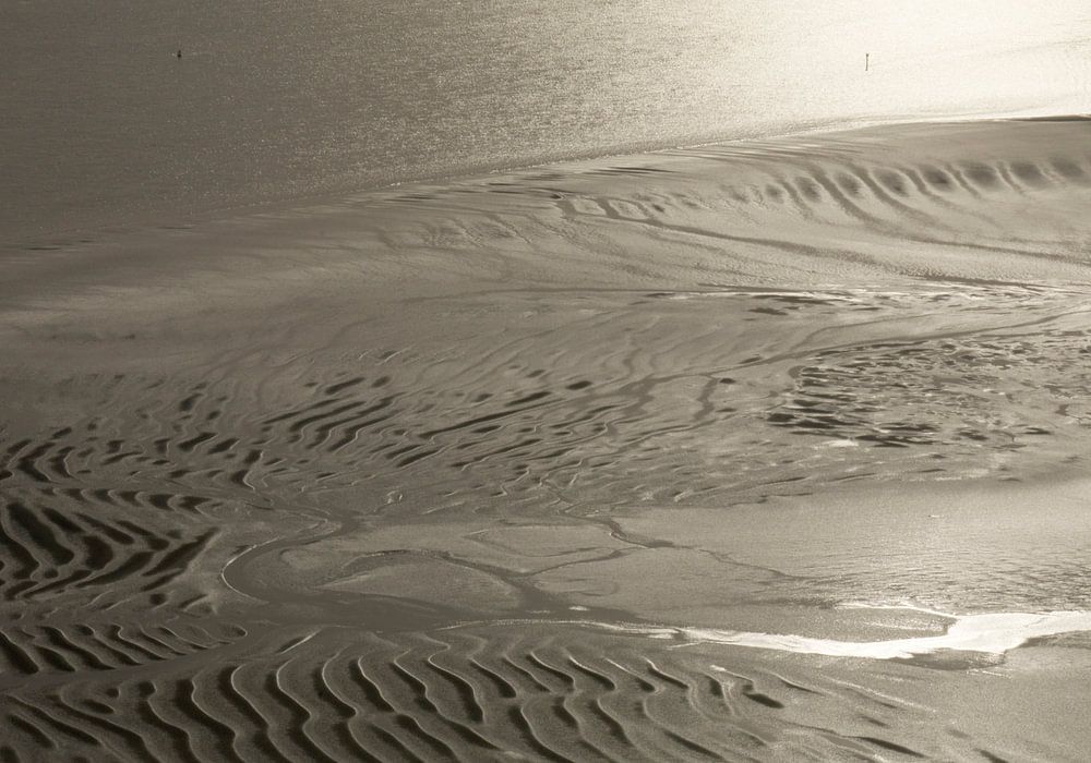Sandbanks in the Westerschelde fall dry at low tide. The ripples are clearly visible in backlight.