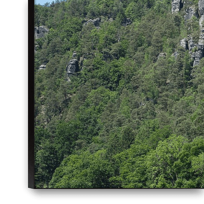 Buy the photo Sandstone cliffs and trees at the Bastei by Adriana Müller on canvas, ArtFrame, poster and wallpaper, printed on demand in high quality.