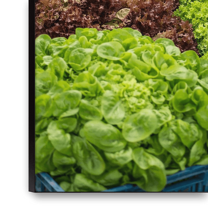 A rich and vibrant market still life that brings together different types of lettuce: fresh green heads, deep red-tinged leaves and soft curls full of texture. The handwritten sign forms the human accent between abundance and simplicity. This image breathes the rhythm of the market, the early hour, wet hands, crates shifting - reminding…