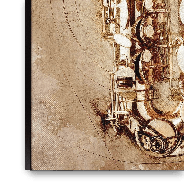 Buy this digital art artwork Saxophone music art #sax #saxophone by JBJart Justyna Jaszke as a reproduction on canvas, ArtFrame, poster and wallpaper, printed on demand in high quality.