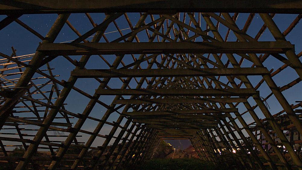 Scaffold for drying stockfish at night by Timon Schneider
