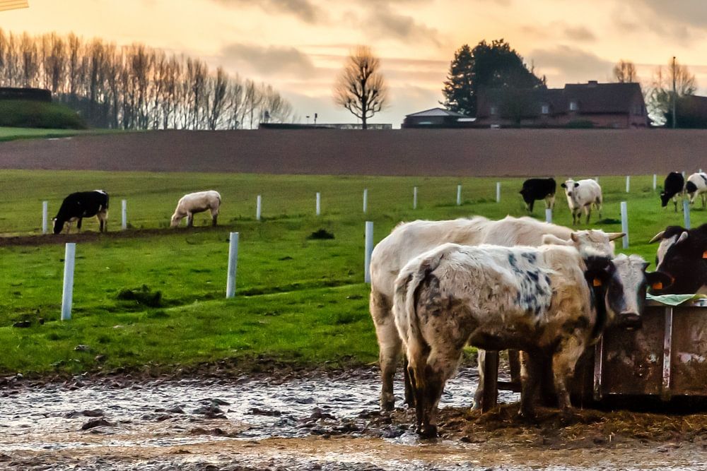 The Schietsjampettermolen at Kruisem, East Flanders under a beautiful morning sky with cows.