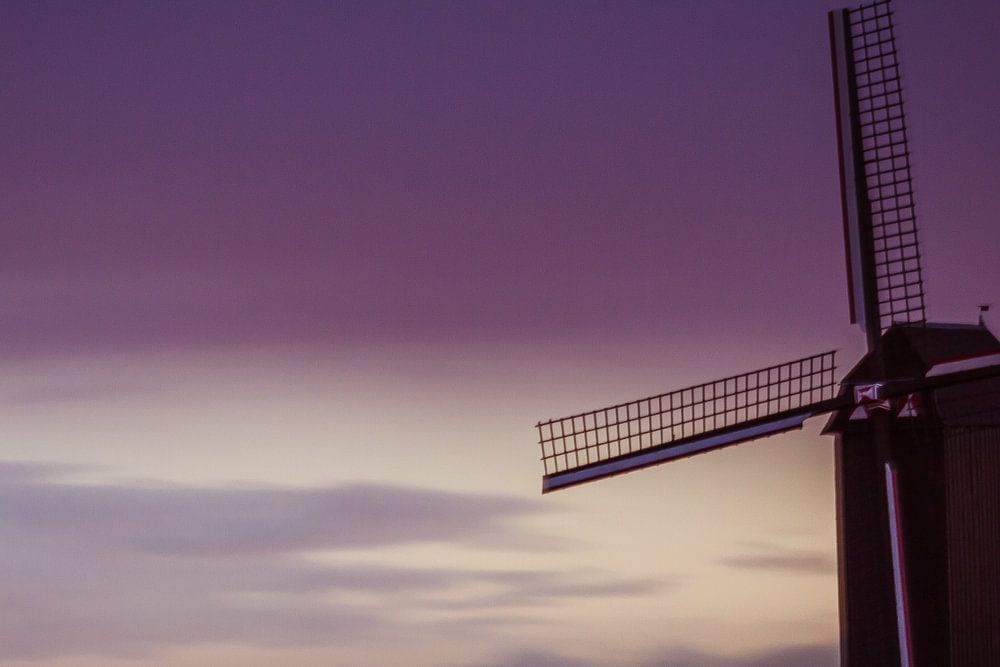 The Schietsjampettermolen at Kruisem, East Flanders under a beautiful purple morning sky.