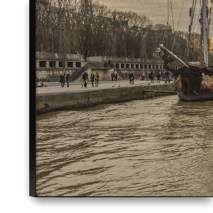 Foto op een boot genomen, van een schip en een stukje van de Eiffeltoren in Frankrijk en mooie wolken op de achtergrond.