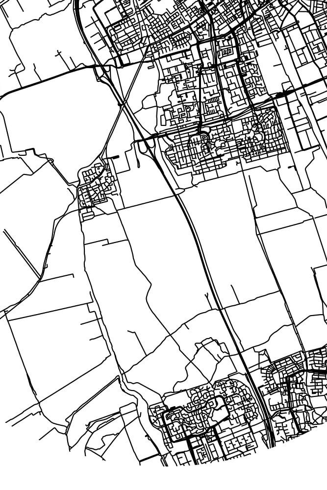 Black and white map, street map or street plan of Schipluiden. Schipluiden is located in the municipality of Midden-Delfland, province of South Holland. On the city map all public roads in Schipluiden are included. Furthermore, the map is provided with the coordinates of the center of Schipluiden.