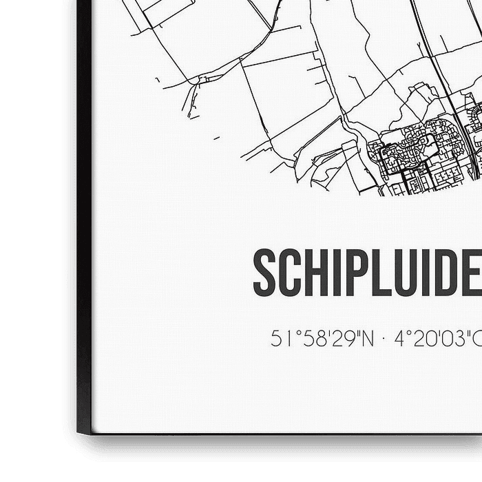 Black and white map, street map or street plan of Schipluiden. Schipluiden is located in the municipality of Midden-Delfland, province of South Holland. On the city map all public roads in Schipluiden are included. Furthermore, the map is provided with the coordinates of the center of Schipluiden.