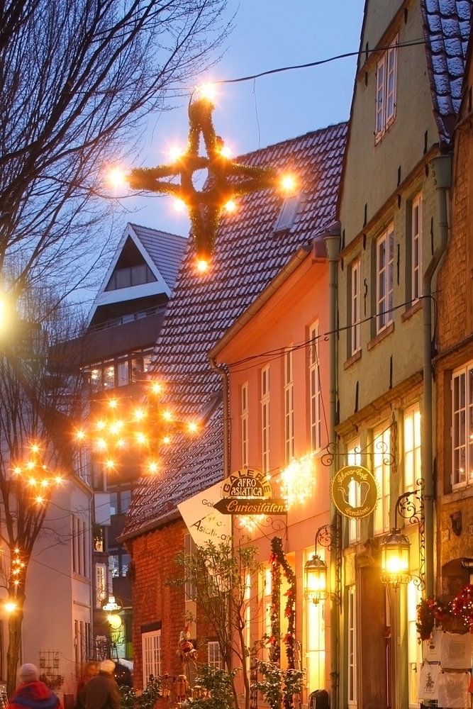 Schnoorviertel in winter with Christmas lights by Torsten Krüger