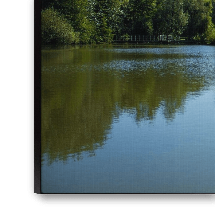 De weerspiegeling van het bos straalt ware schoonheid uit. Echte rust komt je tegemoet.