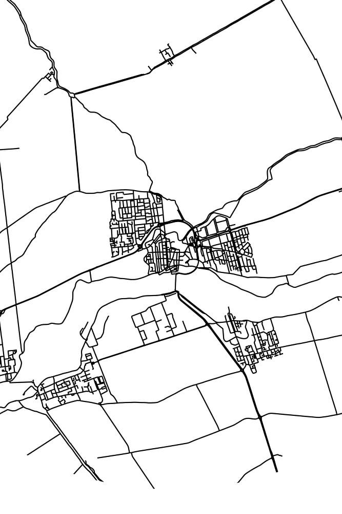 Black and white map, street map or street plan of Schoonhoven. Schoonhoven is located in the municipality of Krimpenerwaard, province of South Holland. The city map includes all public roads in Schoonhoven. Furthermore, the map is provided with the coordinates of the center of Schoonhoven.