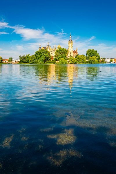View across Lake Schwerin to Schwerin Castle on a summer's day