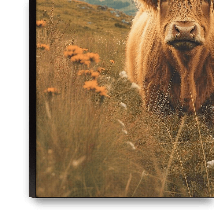 Buy this highland cow art Scottish Highland Cow by Niklas Maximilian on canvas, ArtFrame, poster and wallpaper, printed on demand in high quality.