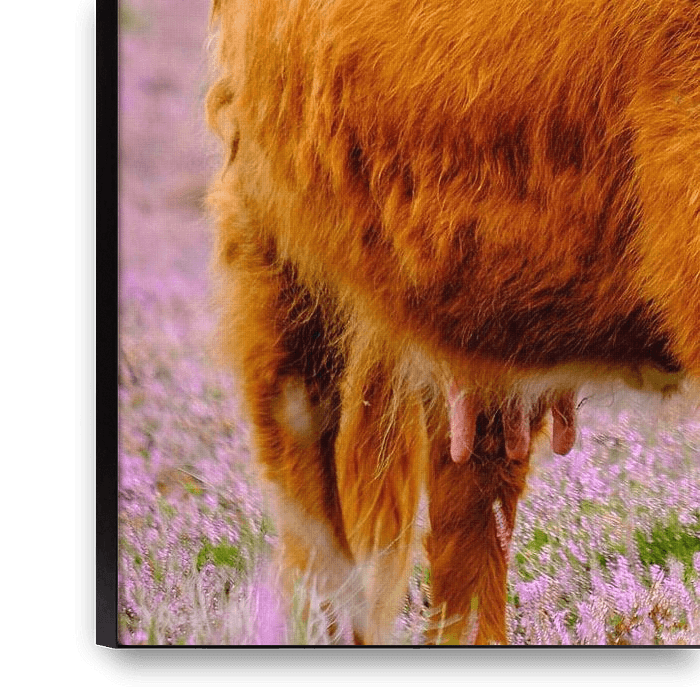 Buy this highland cow art Scottish Highland cattle in a blooming heather field by Sjoerd van der Wal Photography on canvas, ArtFrame, poster and wallpaper, printed on demand in high quality.