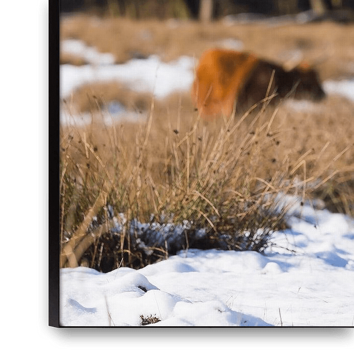 Buy this highland cow art Scottish Highland cattle in the snow near the Posbank by Rob Kints on canvas, ArtFrame, poster and wallpaper, printed on demand in high quality.