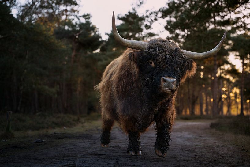Just before sunset, when the light softens and the silence is palpable, this Scottish Highlander bull (aka Highland Cow) looms up from the landscape of the Wezepsche Heide. Like a watchman of the moor, he stands in the middle of the path, unfazed by the day coming to an end. His shaggy coat catches the last warm rays of the sun as the…